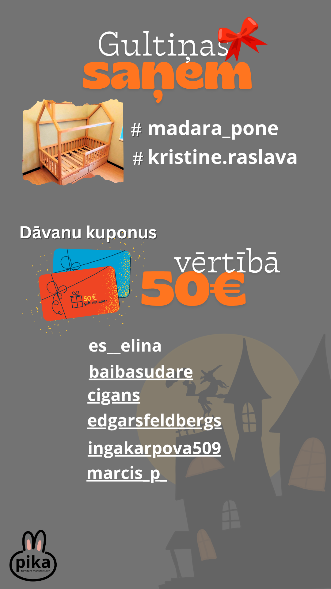 papildu balvu fonds ar vairākiem 50 € dāvanu kuponiem nonāks pie vēl vairākiem dalībniekiem. 🎁