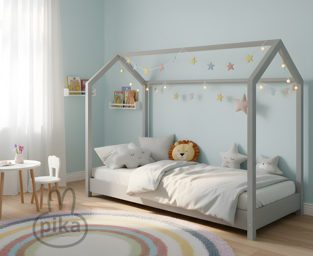 Scandinavian Design Wooden Bed "House" in Minimalist Style