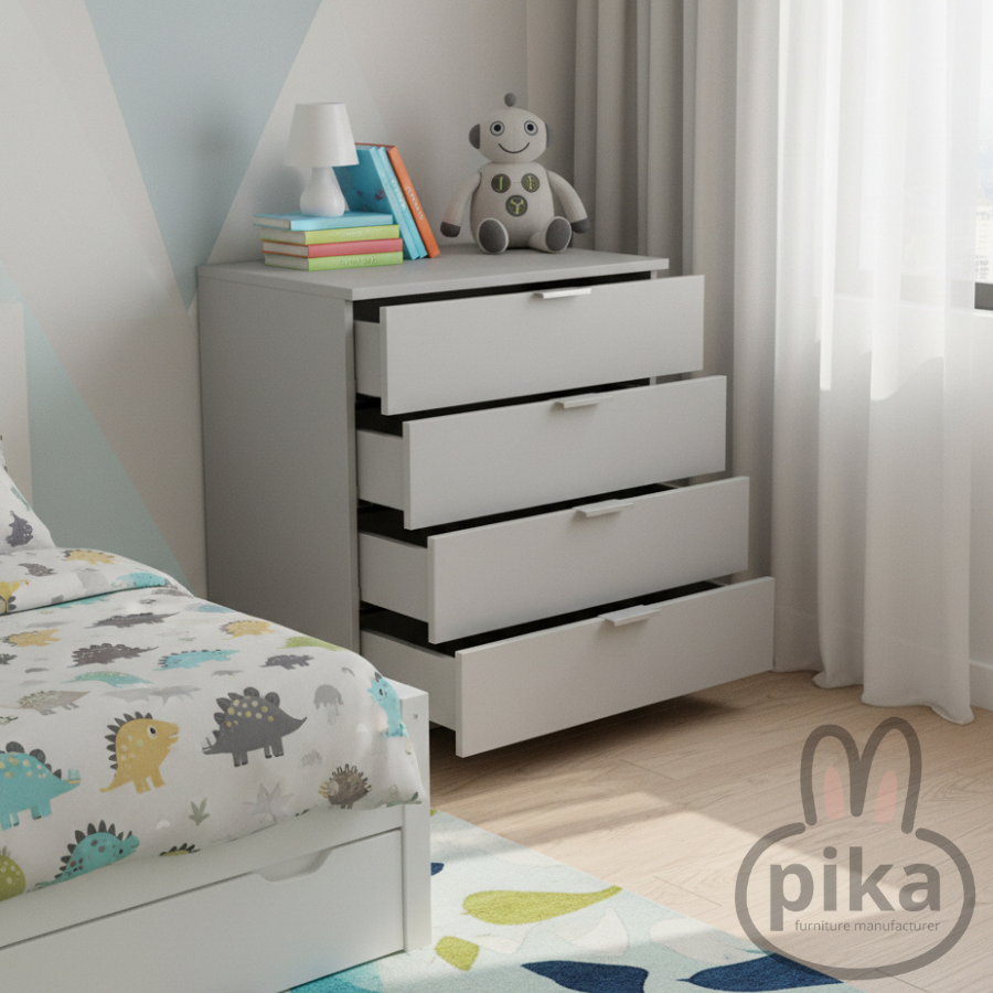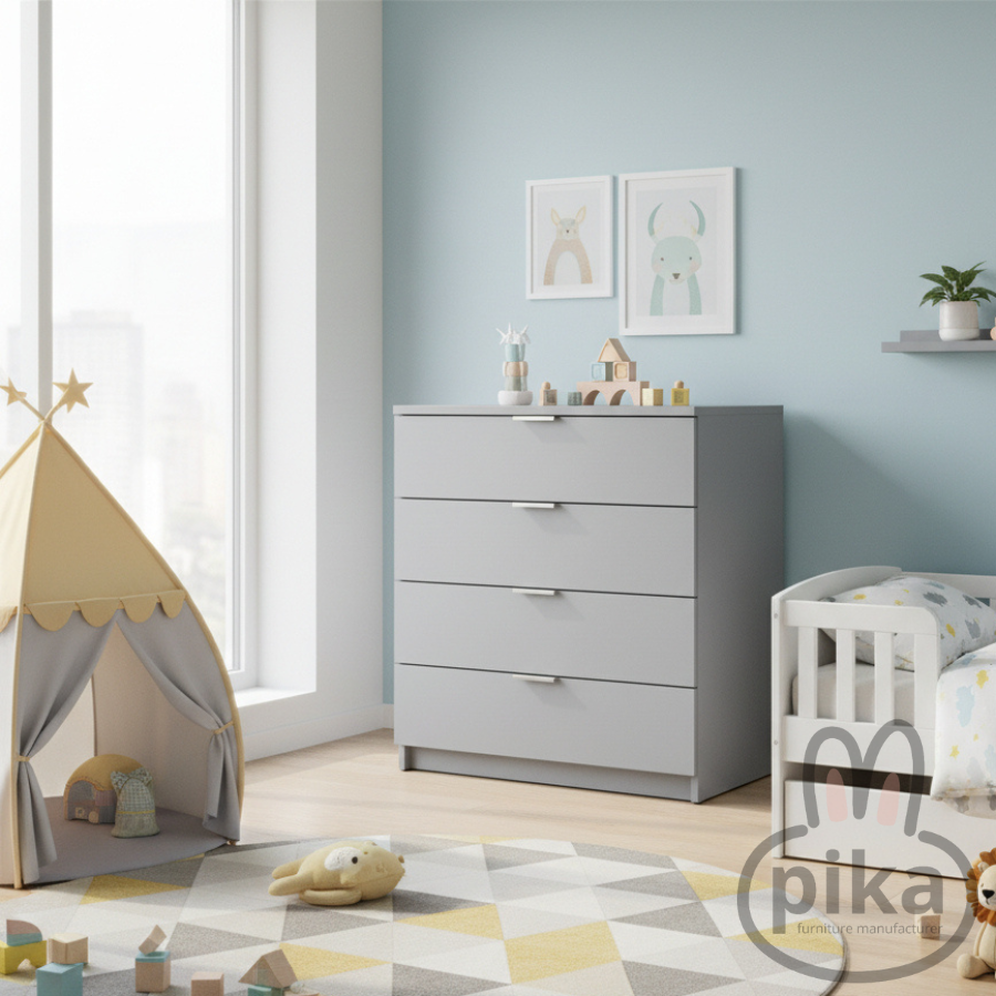 • Metāla rokturi – izturīgi un eleganti, piešķir kumodei modernu vizuālo akcentu.