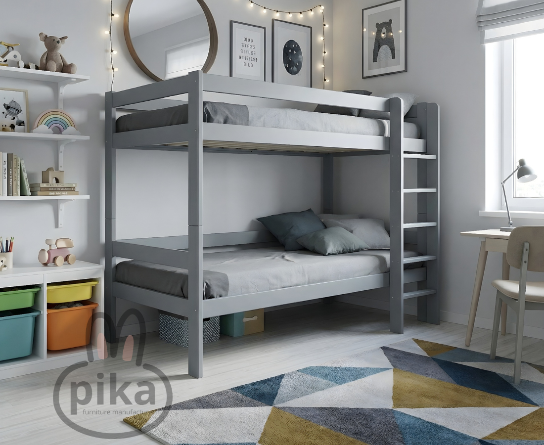 An elegant and functional bunk bed made from solid pine wood. The natural and durable material ensures a stable, safe, and long-lasting construction, идеально подходящую для ежедневного использования.